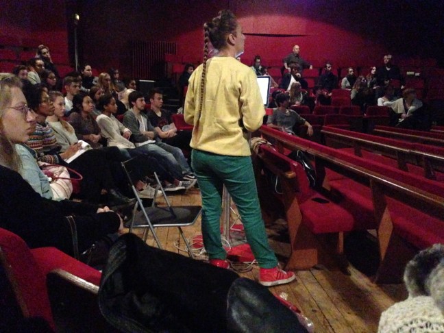Vendredi 6 novembre à midi KASHINK a présenté son travail aux étudiants de l’Ecole Hourdé au sein de l’Européen dans la salle de spectacle. Presqu’une heure de diapos pour leur expliquer qui elle est, ce qu’elle fait, d’où viennent ses influences et quels sont ses engagements !